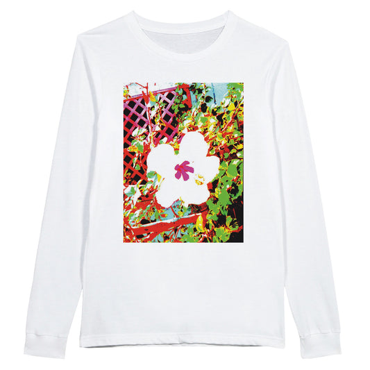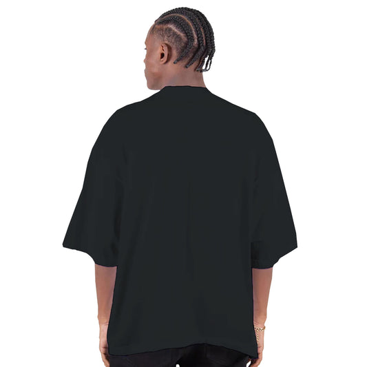 White Hibiscus Oversized Drop-Shoulder Crewneck T-Shirt | Black